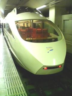 乗ったのはコレ <新宿駅にて>−−よく見ると先頭部にもブルーリボンのマークが